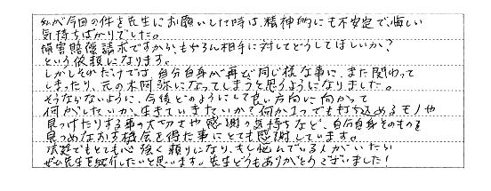 私が今回の件を先生にお願いした時は、精神的にも不安定で、悔しい気持ちばかりでした。