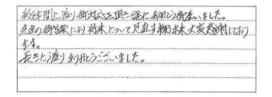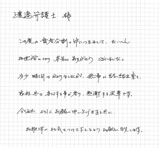 この度の遺産分割の件につきまして、たいへんお世話になり、本当にありがとうございました。